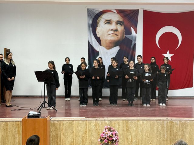 Öğrenciler Atatürk konulu türkü seslendirdiler.