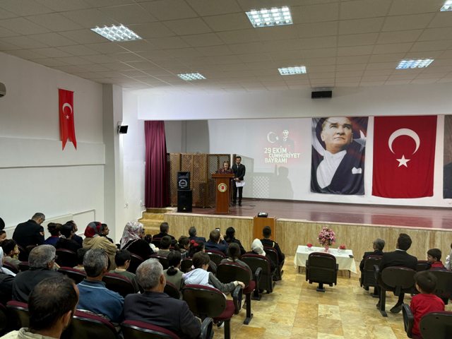 Ağın Niyazi Yıldırım Gençosmanoğlu Kültür Merkezinde düzenlenen 29 Ekim Cumhuriyet Bayramı Saygı duruşu ve istiklal marşı okunması ile başladı.