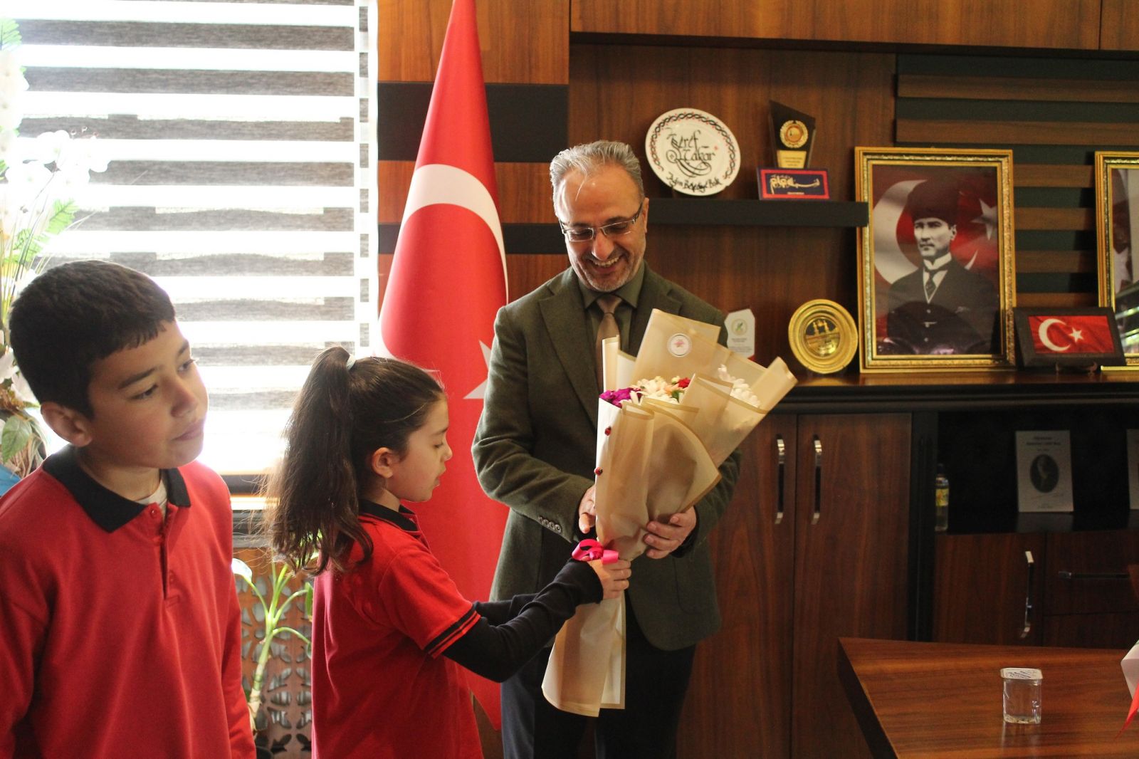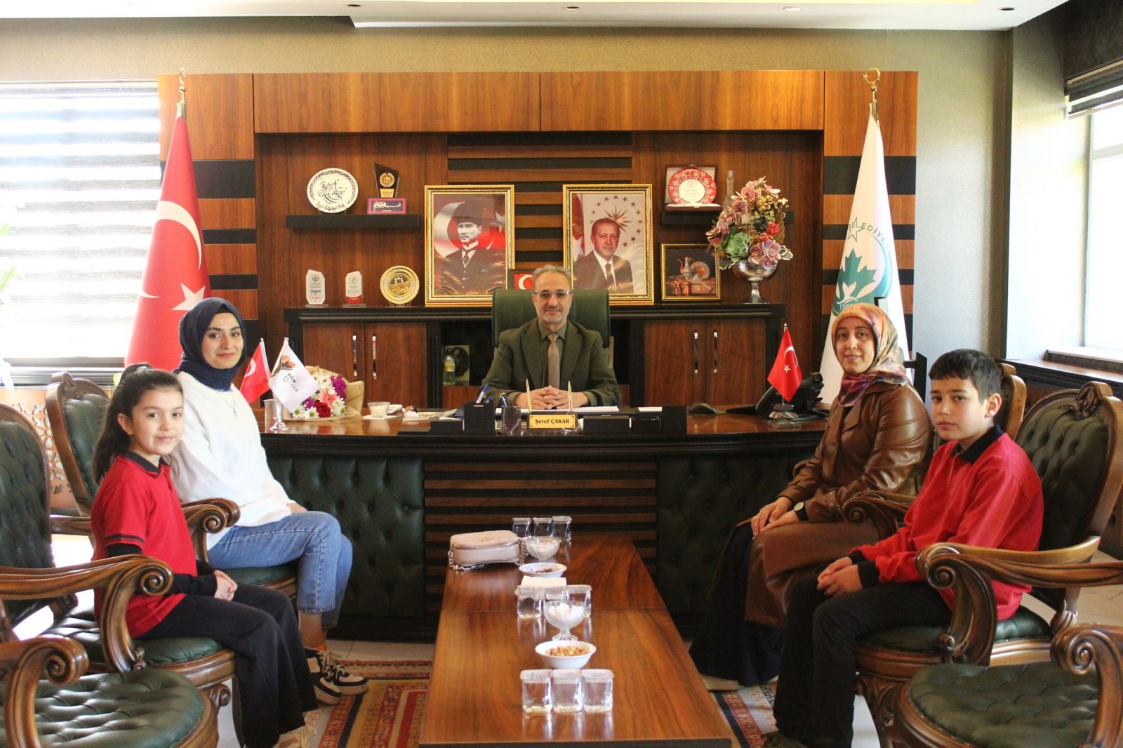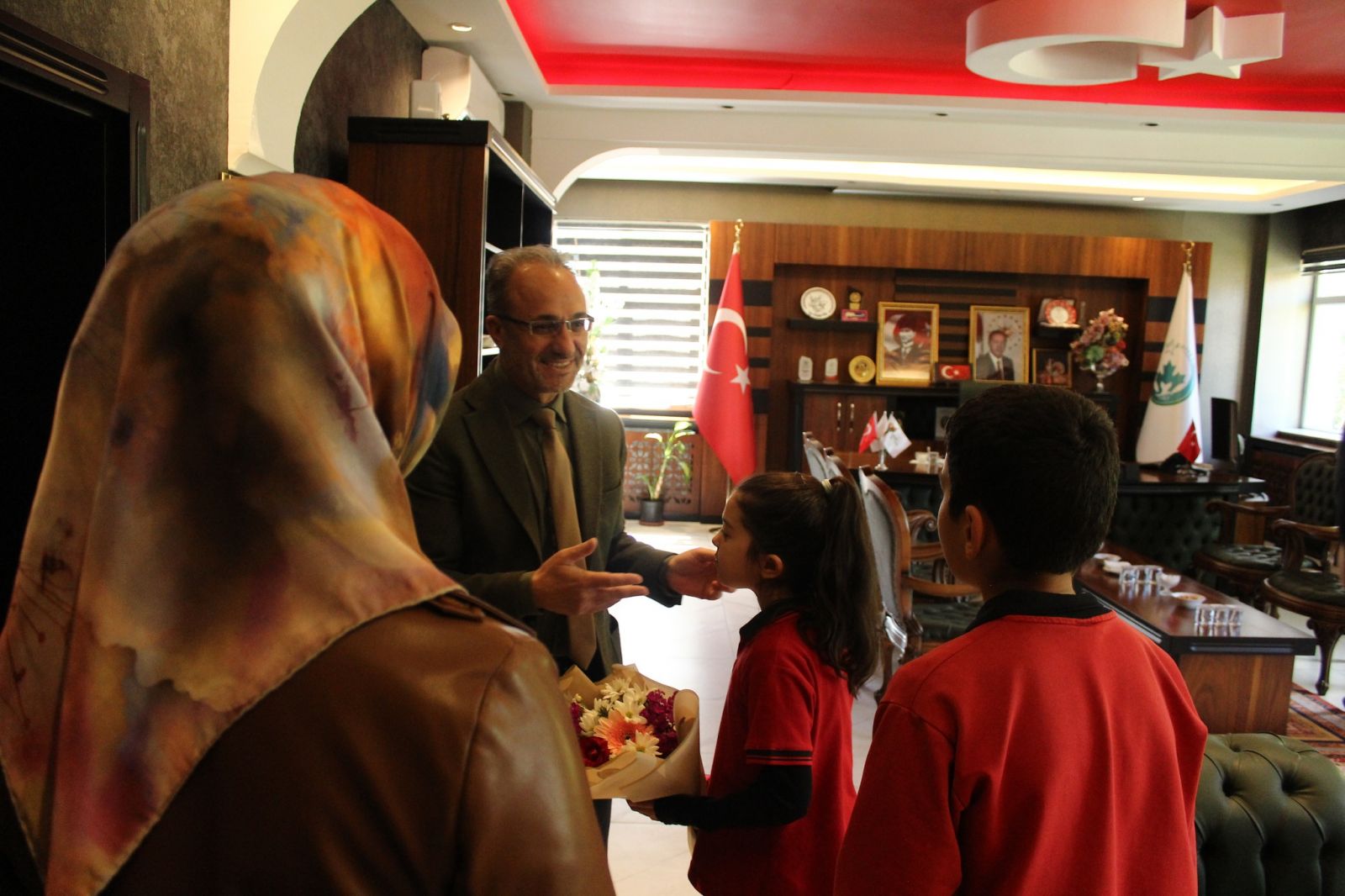 23 Nisan Ulusal Egemenlik ve Çocuk Bayramı kapsamında Mehmet Kemal Karabatak Ortaokulu Müdürü Hülya Bilek ve öğrenciler Elif Nur Karakaş ve Davut Efe Uyumaz, Ağın Belediye Başkanı Şeref Çakar’ ı Ziyaret Ettiler.
