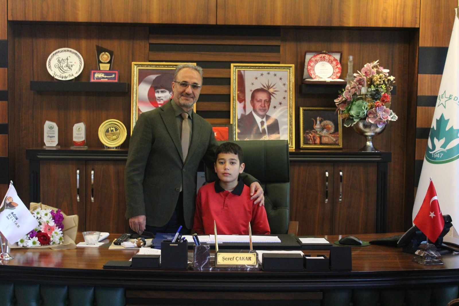 Belediye Başkanlığı makamını devralan 5. sınıf öğrencileri Elif Nur Karakaş ve Davut Efe Uyulmaz, hayallerindeki şehri anlattılar.
