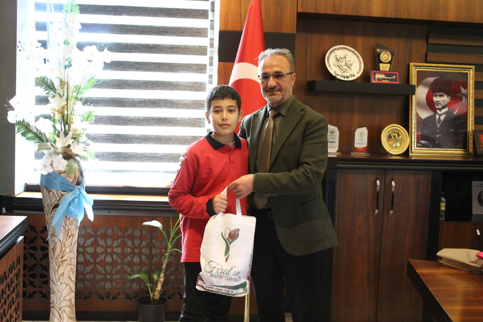 Ağın Belediye Başkanı Şeref Çakar, Öğrencilere Başarılar diledikten sonra Günün anısına Öğrencilere Çeşitli hediyeler verdi.