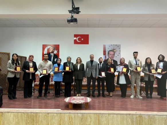 Program sonunda Ağın Tuğçe Yılmaz, Ağın Belediye Başkanı Şeref Çakar,öğretmenlere plaket ve teşekkür belgesi takdim ettiler." İfadesi kullanıldı.
