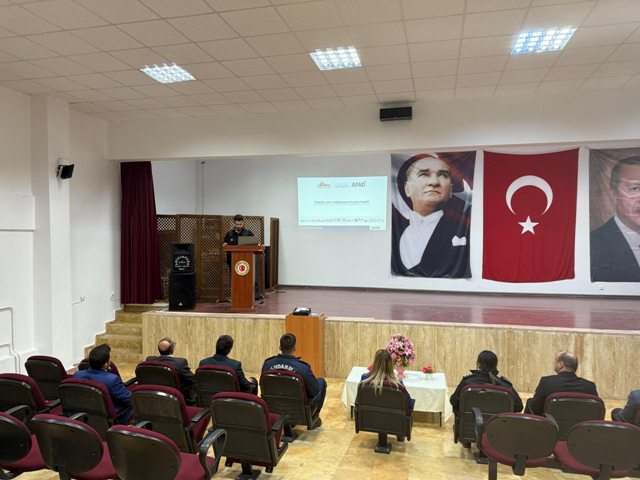 Afet ve Acil Durum Yönetim Merkezi Şube Müdürü Erdinç Kıvanç, TAMP çerçevesinde yürütülen planlama çalışmaları, kurumların sorumluluk alanları ve müdahale süreçlerinde dikkat edilmesi gereken hususlar hakkında bilgilendirmelerde bulundu.