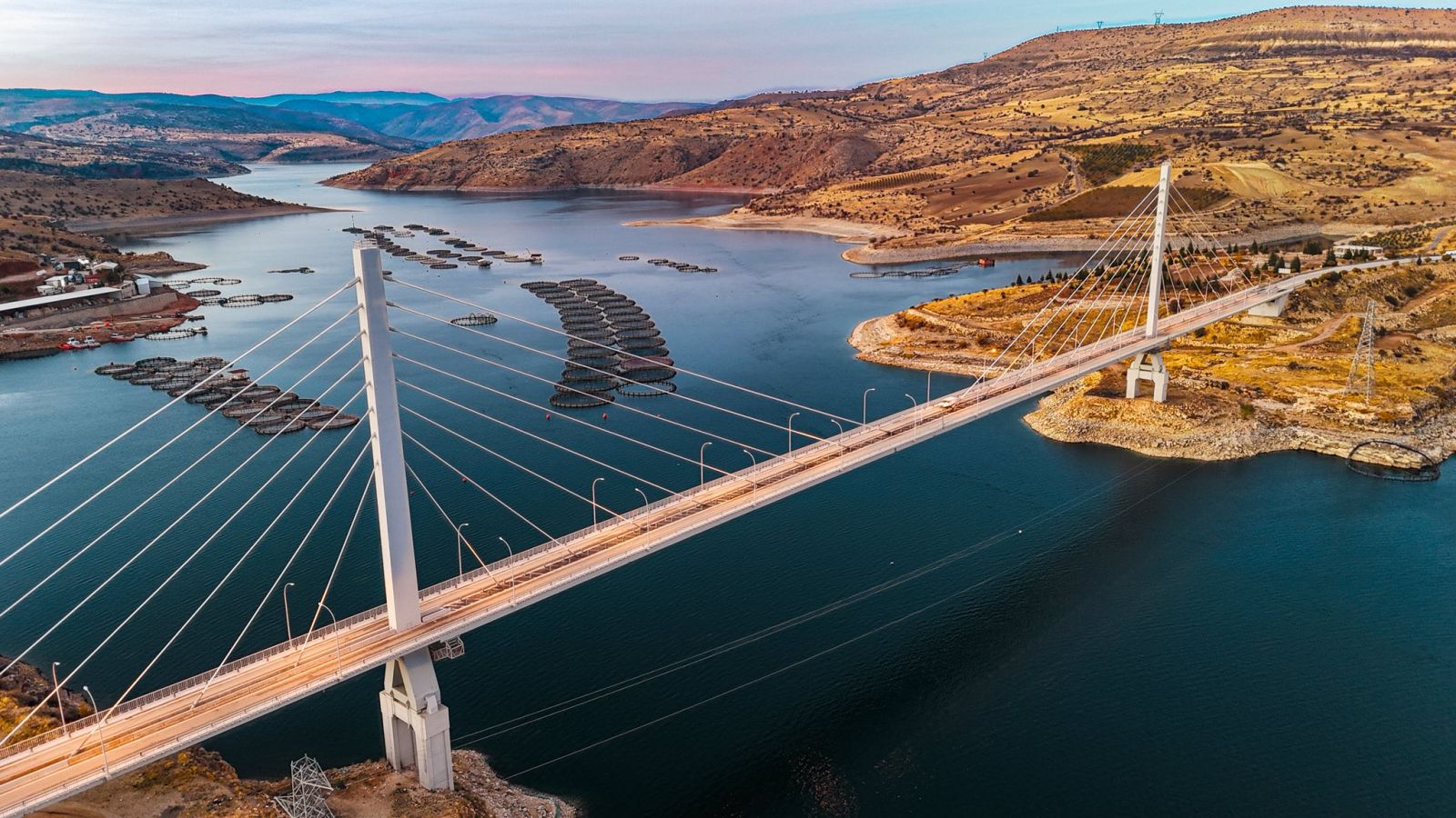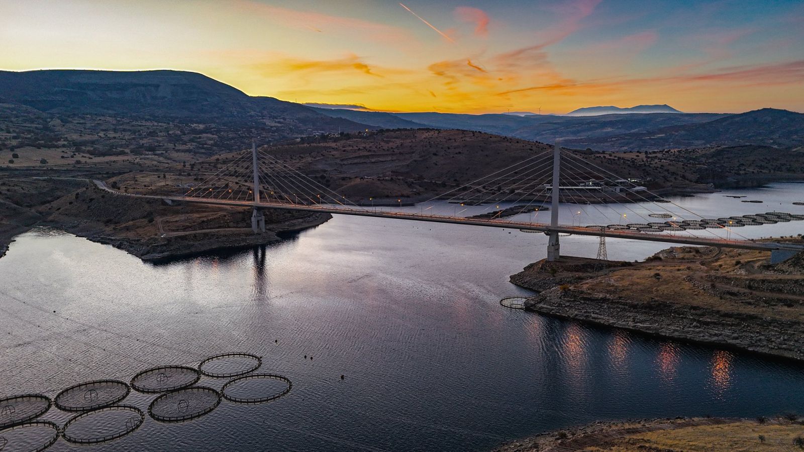 "Fırat Nehri’nin üzerinde yükselen Ağın Şehit Mehmet Şevket Uzun Köprüsü, gün batımının renkleriyle buluşunca eşsiz bir manzaraya dönüşüyor.