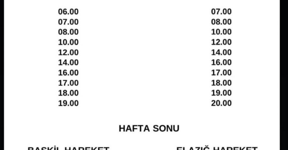 BASKİL BELEDİYESİ OTOBÜS YOLCU TAŞIMA SEFER SAATLERİ 2025
