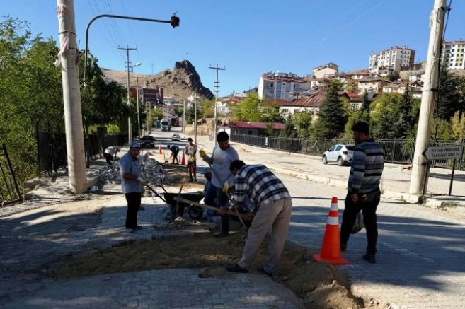 Keban İlçesinde Keban Belediyesi Doğalgaz çalışmaları sırasında bozulan yolların onarımını yapıyor.