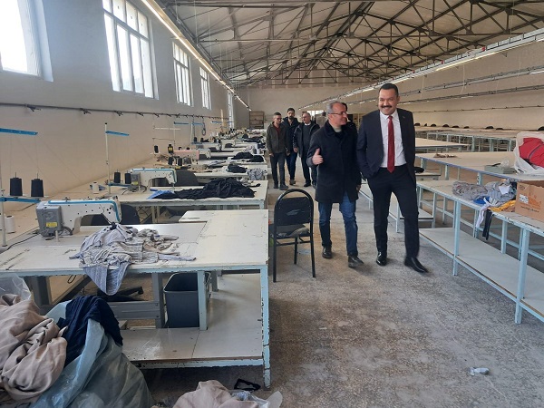 Ağın Kaymakamı Furkan Taha Türkmenoğlu ,Ağın Belediye Başkanı Şeref Çakar, Sosyal Yardımlaşma ve Dayanışma Vakfı (SYDV) Müdürü Dursun Kara ile birlikte Ağın Belediye Başkanlığına ait fabrika alanında bulunan tesiste, tekstil atölyesi olarak kullanılmak üzere özel sektöre kiraya verilen Tekstil atölyesinde incelemede bulundu.