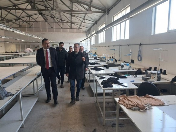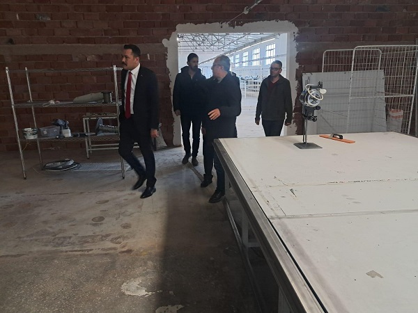 Ağın Kaymakamı Furkan Taha Türkmenoğlu ,Gerekli çalışma ve düzenlemelerin yapılmasının ardından atölyeye dönüştürülen tekstil atölyesi tesislerde gezdi
