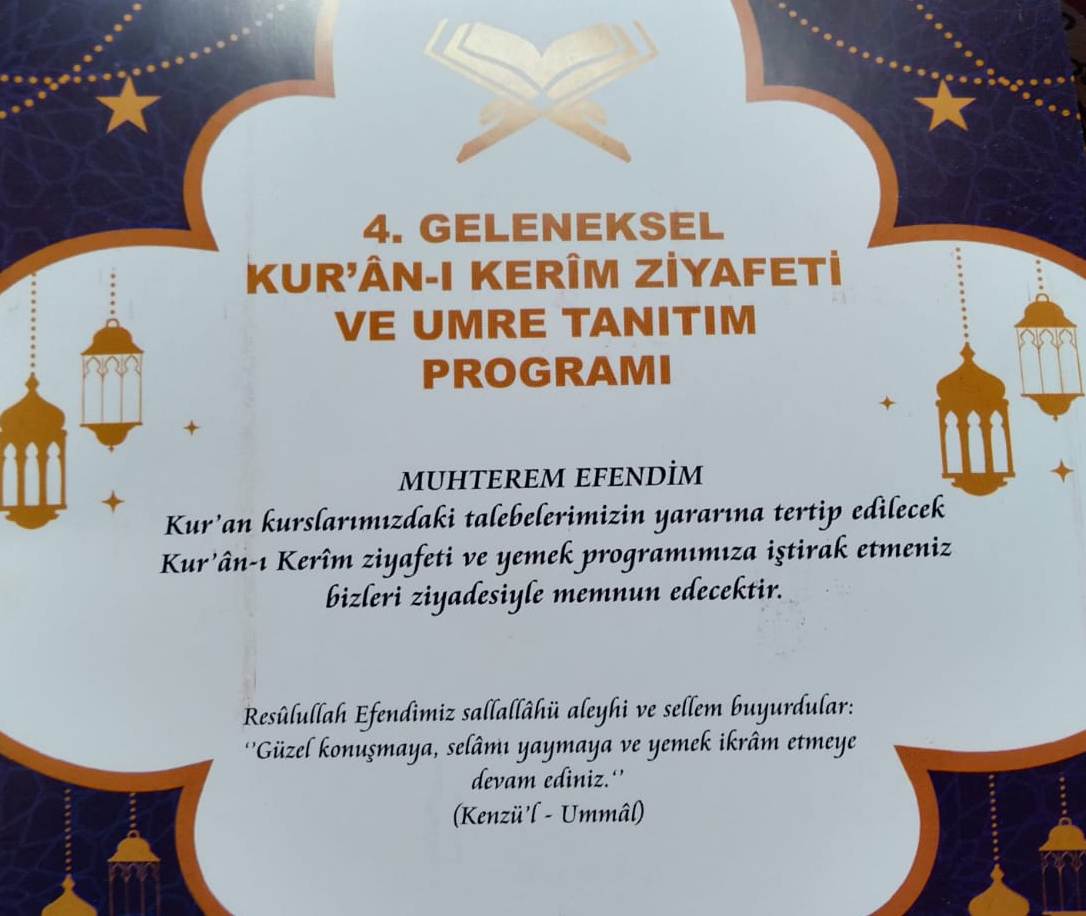 Kebanlılar Elazığ Merkez Paşa konağı düğün Salonunda Geleneksel Kuranı Kerim ziyafeti ve Umre tanıtım programına davet edildi.