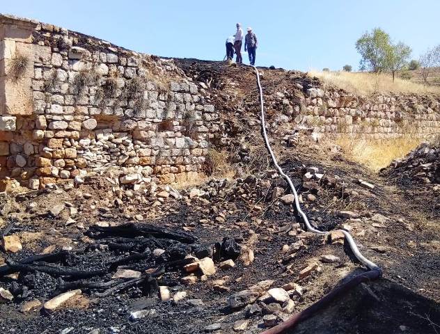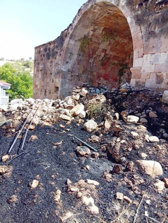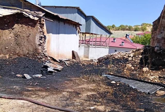 Elazığ'ın Keban İlçesi Denizli Köyünde 13 yüzyıl Selçuklular döneminde yapılan 800 yıllık Tarihi Denizli Kervan Sarayı ve 1 Ev kısmen yanarak hasar gördü.
