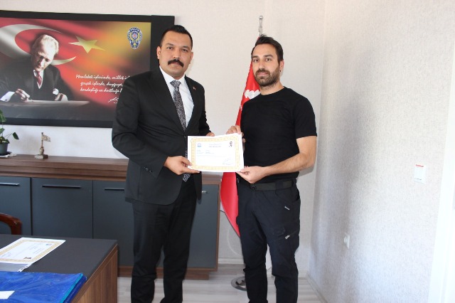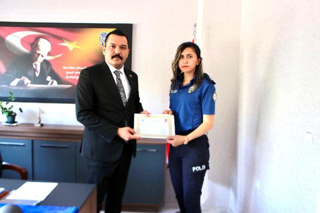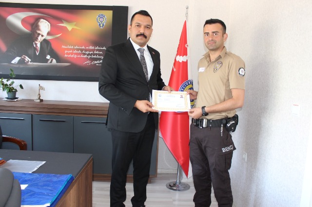 İlçe Emniyet Müdürlüğünde Başarılı Emniyet Personeline belge verdi.