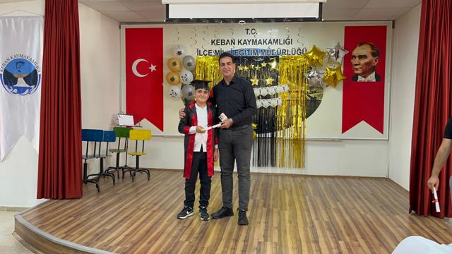 Programda 4. sınıf öğretmeni Samet Kerti de öğrencileriyle birlikte sahneye çıkınca duygusal anların yaşandığı programda öğrenciler, ilkokula veda etmenin heyecanını yaşarken, öğretmenler ve idareciler de çocuklara başarı dileklerinde bulundu.