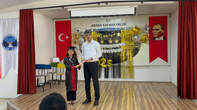 Keban İlçe Milli Eğitim Müdürlüğü Hacı Fevzi Efendi Konferans Salonunda gerçekleştirilen mezuniyet törenine, okul müdürü ve tüm okul personeli ve Öğrenci velileri katıldı.