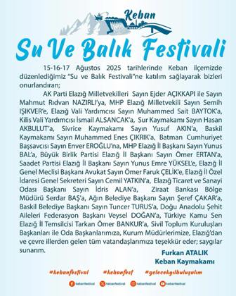 Keban Kaymakamlığı Festivale katılanlara teşekkür yayımladı.