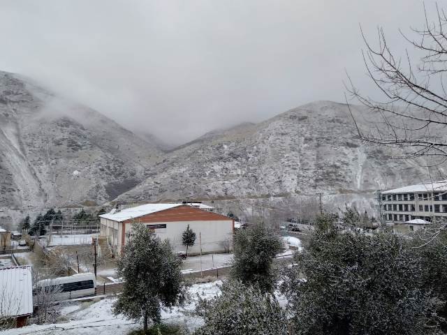 İlçe Merkezine Kar yağarken, İlçenin,Nimri,Seftil,Rostan,Kıjkıjık dağlarına yılın ilk karı yağdı