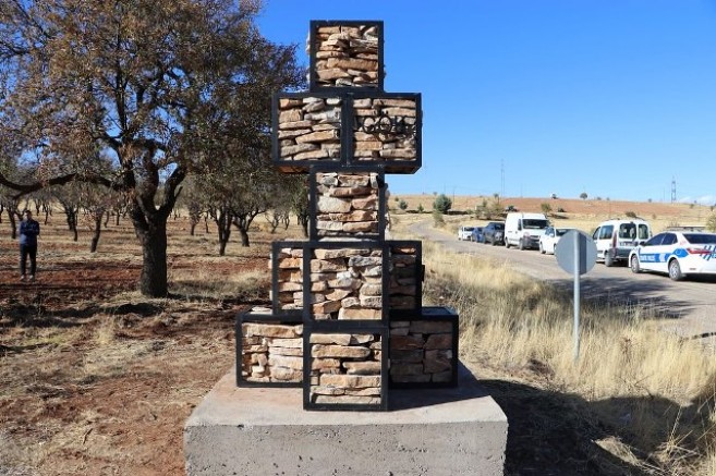 NİMRİ KULLUKLARI 2025 " GÖK YER - SU " heykeli, Hacettepe Üniversitesi Güzel Sanatlar Fakültesi profesörü, heykeltıraş Refa Emrali tarafından 5 - 11 Ekim tarihlerinde, Keban Nimri Kazım Hasan Bademliğinde gerçekleşti.