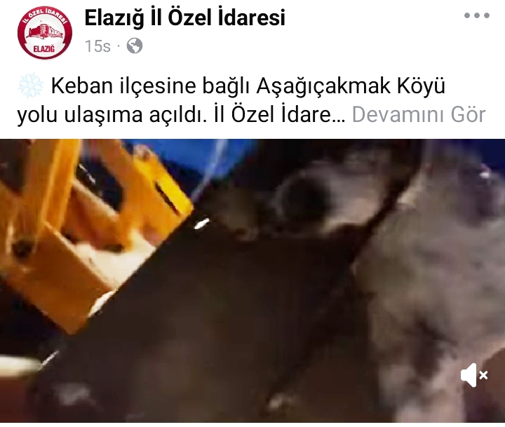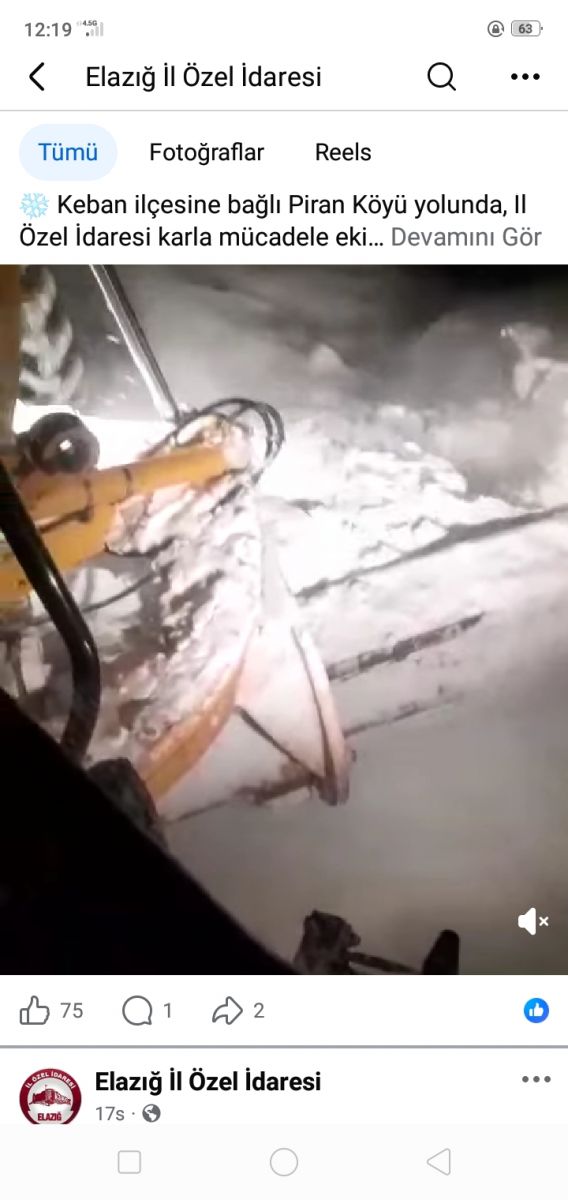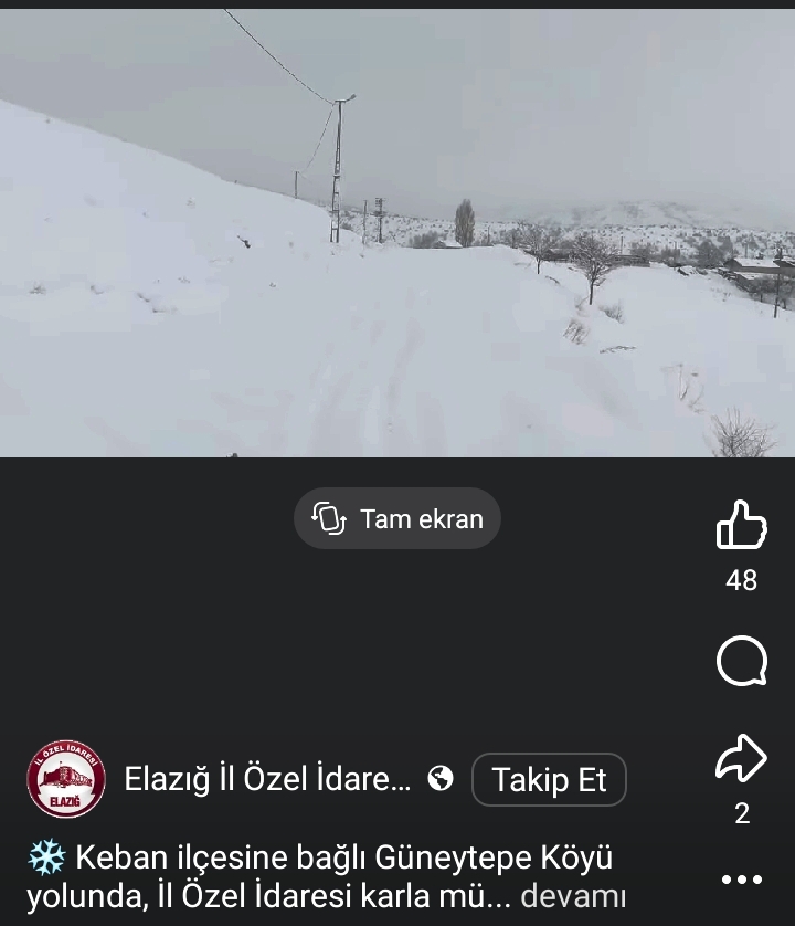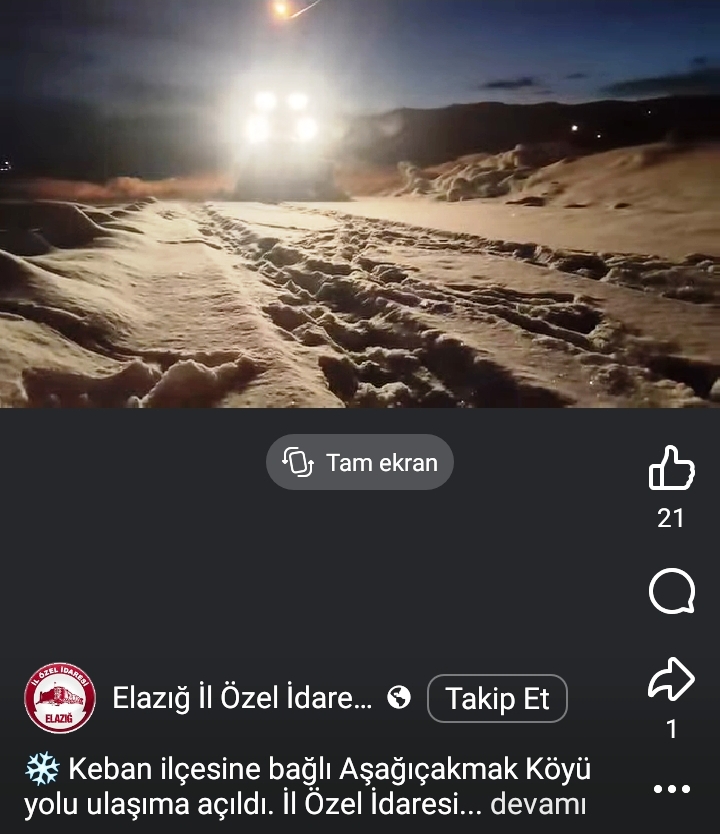 "Keban ilçesine bağlı Keban Aşağıçakmak-Güneytepe ve Piran Köyleri yolunda, İl Özel İdaresi karla mücadele ekiplerimizin çalışmaları sürüyor." İfadesi kullanıldı.