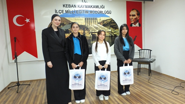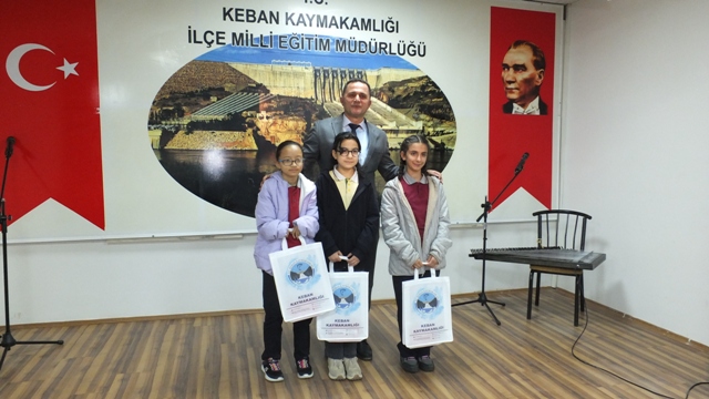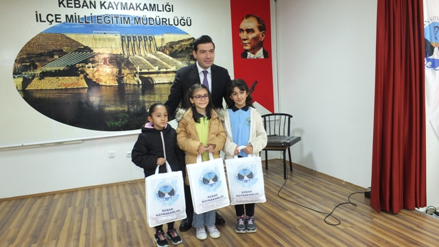 24 Kasım Öğretmenler günü nedeniyle ilk ve orta dereceli okullar arası düzenlenen " Öğretmenler günü " konulu resim, şiir ve kompozisyon dallarında düzenlenen yarışmalarda dereceye giren öğrencilere hediyelerini Keban Kaymakamı Furkan Atalık,Keban Belediye Başkanı Yücel Doğan, İlçe Cumhuriyet Başsavcısı Gülnur Cansın tarafından verildi.