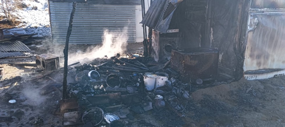 Elazığ'ın Keban İlçesi Altıyaka Dede Mezrasında çıkan Yangında 1 Konteynır ve içindeki Ev aletleri yandı.