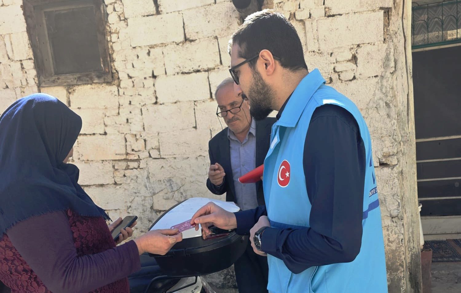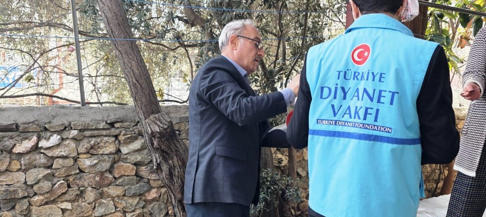 Keban İlçe Müftüsü Samet Çiçen, "ihtiyaç sahibi vatandaşları ziyaret ederek gıda yardım kartlarını bizzat takdim etti.