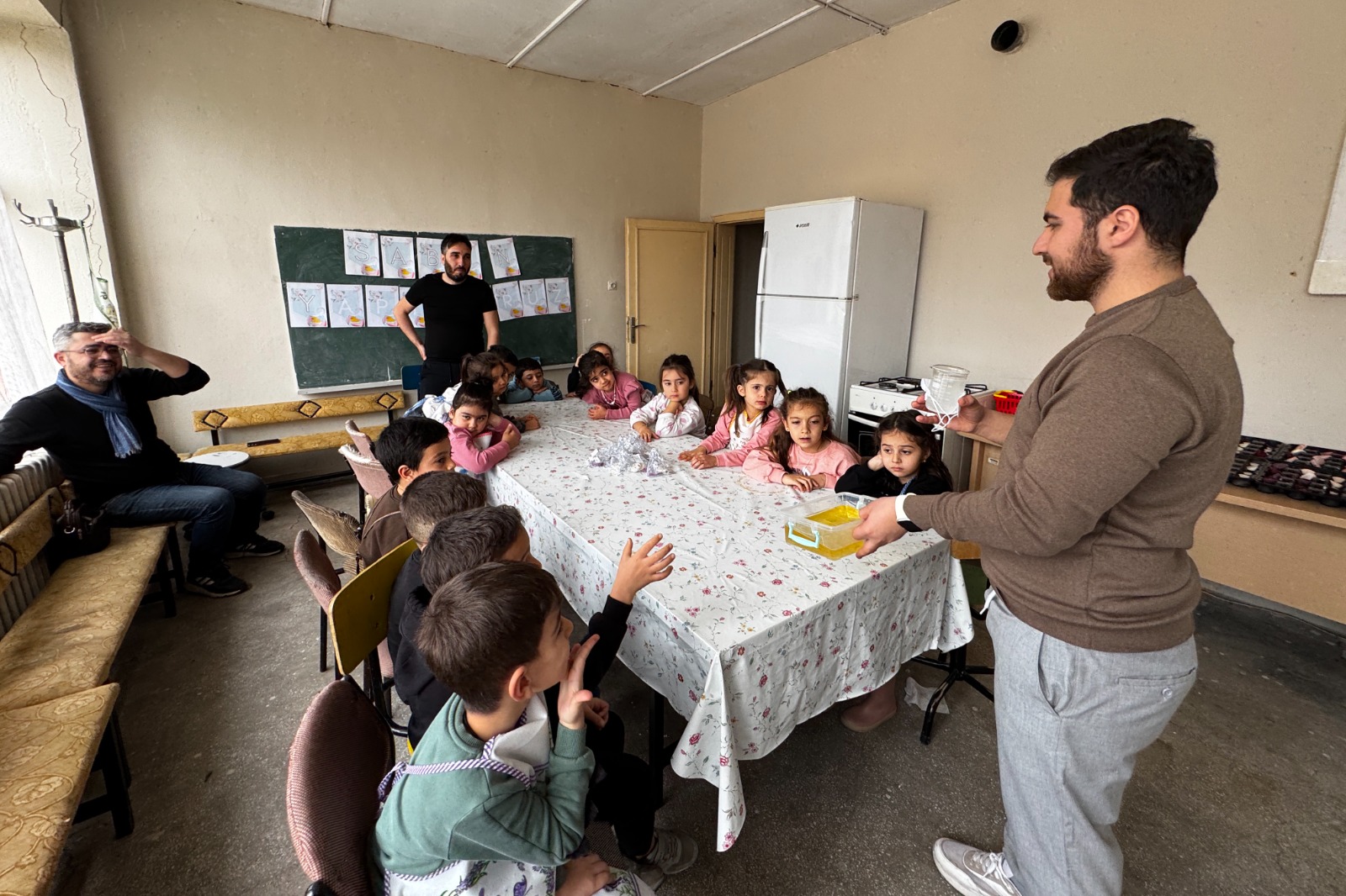 Elazığ'ın Keban ilçesinde Fevzi Çakmak İlkokulu'nda ana sınıfı ve ilkokul öğrencileri evlerden...