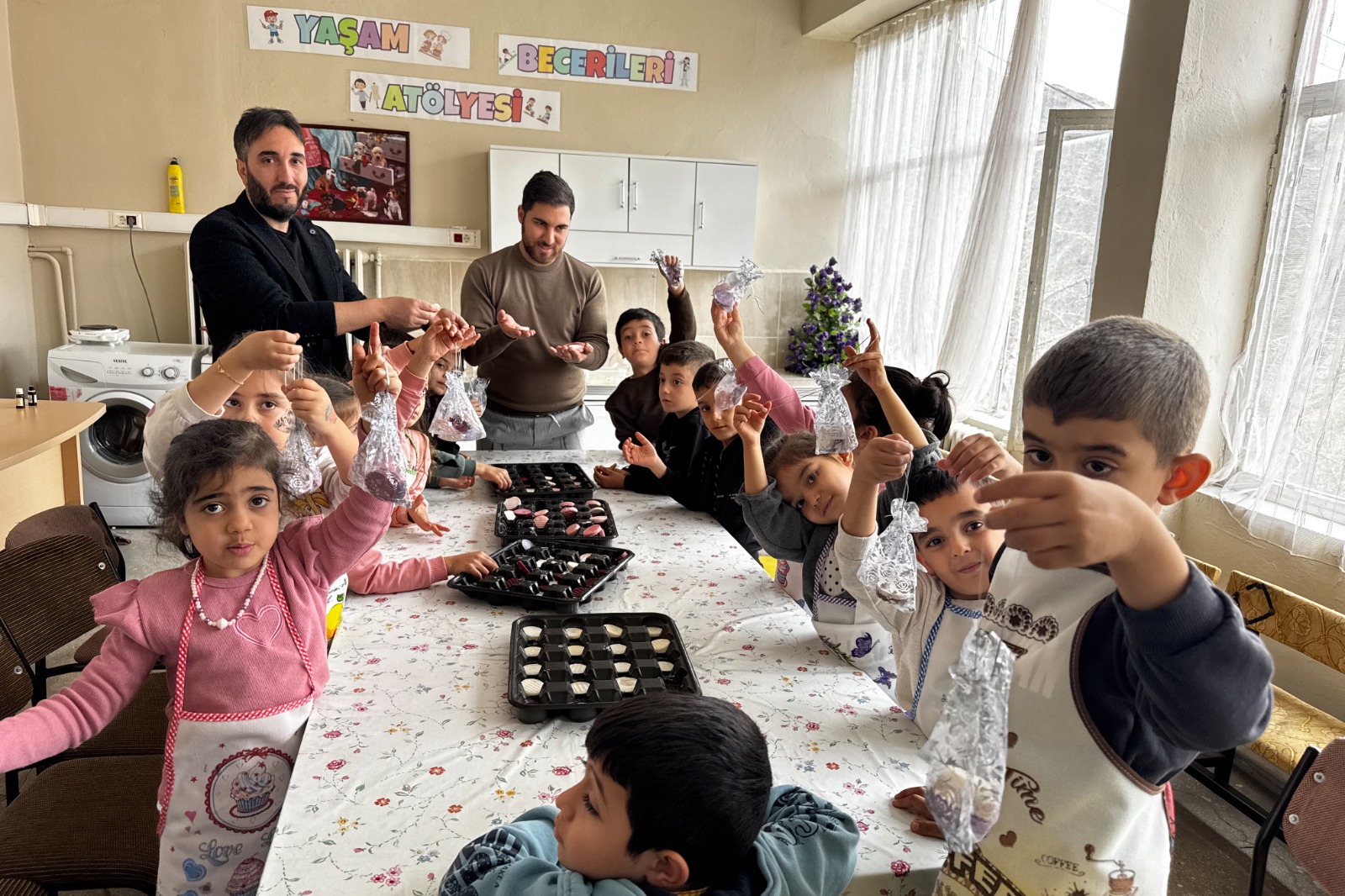Elazığ'ın Keban ilçesinde Fevzi Çakmak İlkokulu'nda ana sınıfı ve ilkokul öğrencileri evlerden toplanan atık yağlardan, öğretmenleri gözetiminde renkli ve kokulu sabunlar hazırladı. Öğrenciler, yaptıkları esanslı sabunları, 8 Mart Dünya Kadınlar Günü dolayısıyla öğretmenleri tarafından okula davet edilen annelerine hediye etti.