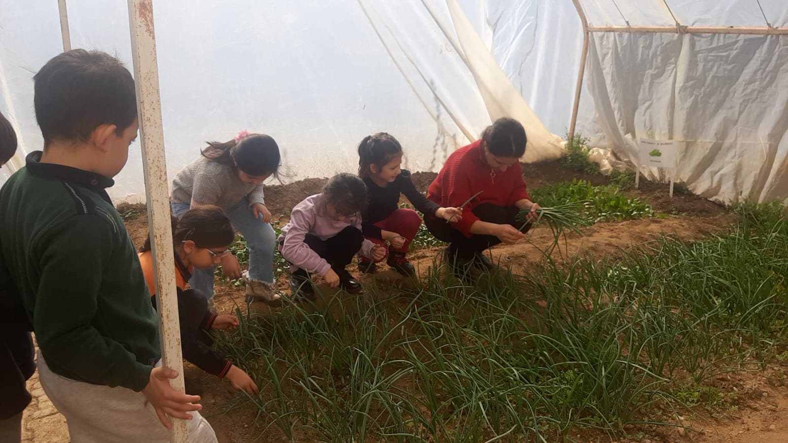 Ocak ayında okul serasına ekimini yaptığımız yeşillik tohumlarımız büyümeye başladı. Bugün 1. ve 2. sınıf öğrencilerimiz yeşil soğan ve rokaları toplama başladılar.