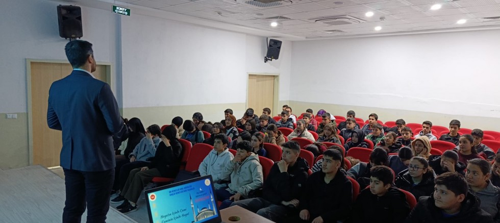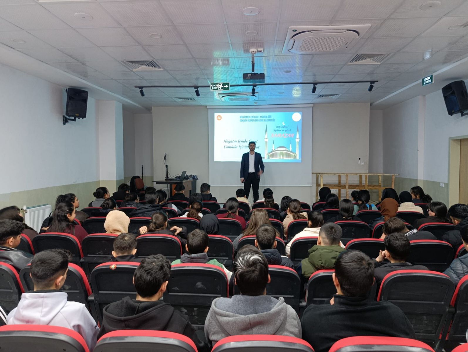 Keban İlçe Müftülüğü Vaizi İlyas Gül tarafından Musa Coşkun Ortaokulu’nda 7. sınıf öğrencilerine yönelik “Hayatımda Cami ve Ramazan” başlıklı konferans ,Keban Çok Programlı Anadolu Lisesi’nde 9, 10 ve 11. sınıf öğrencilerine yönelik “Caminin İçinde Hayat, Hayatın İçinde Cami ve Ramazan” başlıklı konferanslar düzenlendi.