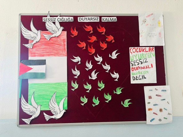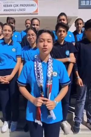 Keban İlçesinde okullardaki Öğrenciler Filistin'deki insan hakları ihlallerinin durdurulması için dikkat çekmek,farkındalık oluşturmak amacı ile etkinlik düzenledi.