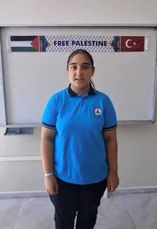 Etkinliklerde öğrenciler Filistinli çocuklar için kaleme aldığı duygu ve düşüncelerini anlatan bir konuşma yaptılar.