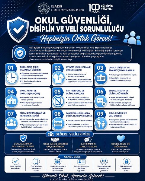 "Güvenli eğitim ortamları sorumluluk ve işbirliğiyle mümkündür.Çocuklarımızın güvenliği hepimizin ortak sorumluluğudur." İfadesi kullanıldı.
