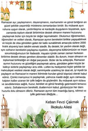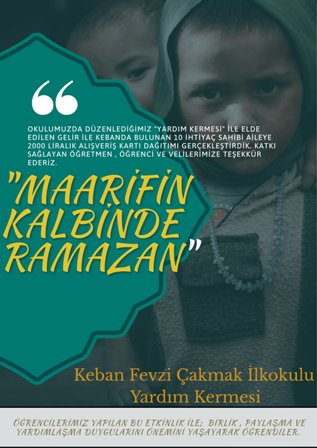 Keban Fevzi Çakmak İlkokulu tarafından Ramazan Ayı Münasebetiyle düzenledikleri kermeste elde edilen gelirle 10 Aileye alışveriş kartı olarak verildi.