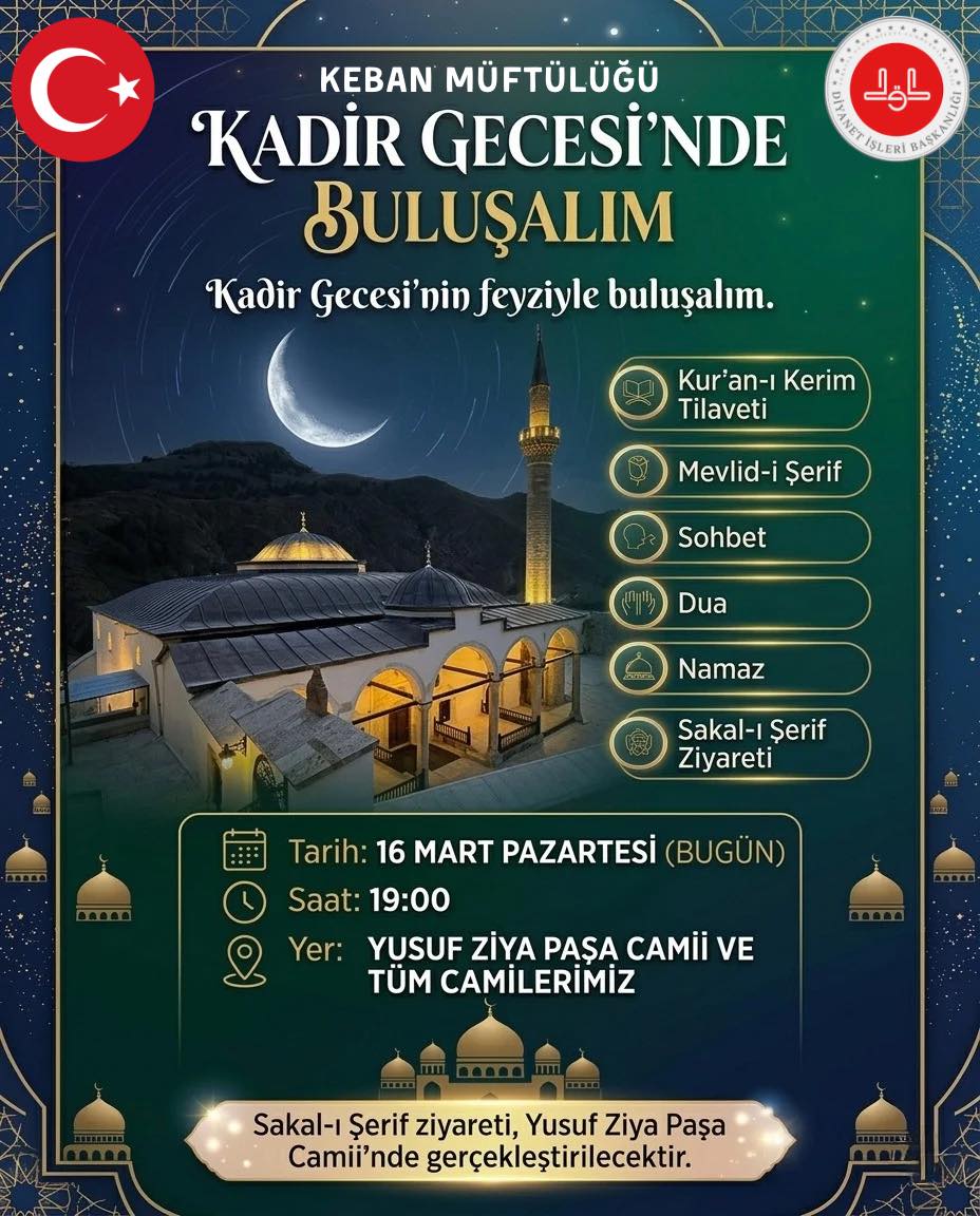 Özdemir ,Sakallı Şerif ziyareti Erkekler İçin 16 Mart 2026 Pazartesi Günü Bugün Teravihten Sonra başlayacaktır.