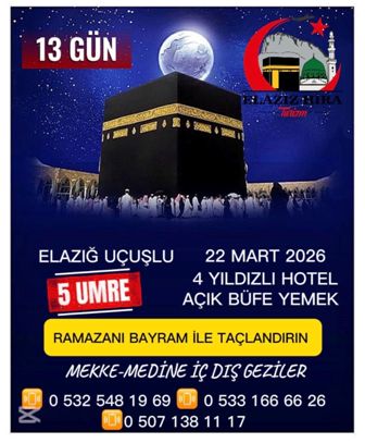 Kebanlı Hemşerimiz Elaziz Hira Umre Turizm Yüksel Çakmak'a ait Umre Firması ile Diyarbakır Havalimanından saat 09.40'da Keban'dan Keban Eski Belediye Başkanı Fethiye Atlı,Eyyüp Atlı'nı eşi Raziye Atlı,Gazeteci Hamza Doğan'ın kızı Hediye Doğan(Özcanlı),Balıkçı Mehmet Ali Polat'ın eşi Zuhal Polat ve Oğlu Ayaz Polat,Çevrekaya Rostan köyünden Hasan Taşkın'ın Eşi Ülkü Taşkın, Keban Jandarmadan Uzman Eren Sapmaz'ın eşi Neslihan Sapmaz'ın aralarında bulunduğu grup kutsal topraklara ziyaret için Medine Havalimanına Uçtular.