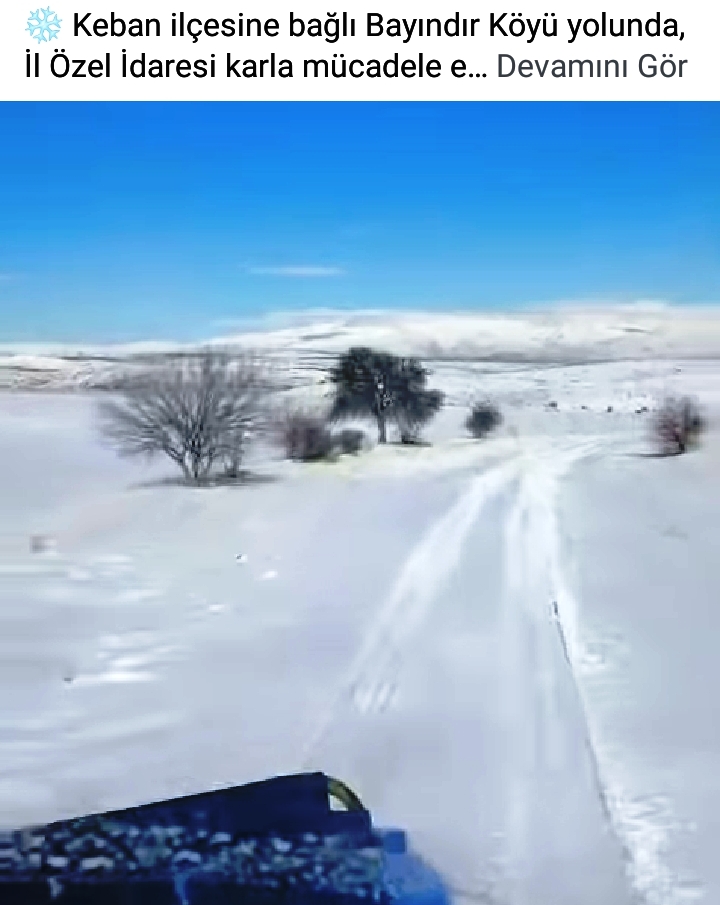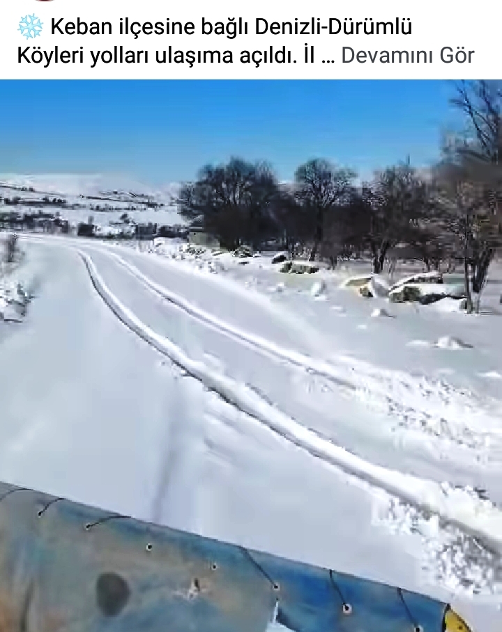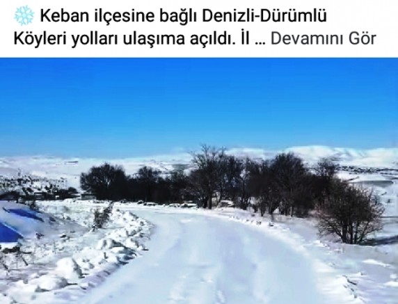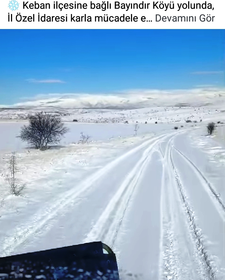 "Keban ilçesine bağlı Denizli,Dürümlü,Bayındır Köyleri yolunda, İl Özel İdaresi karla mücadele ekiplerimizin çalışmaları sürüyor." İfadesi kullanıldı.