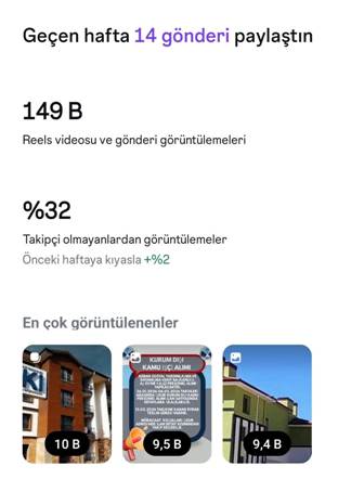 Yine Keban Gazetesi instagram sayfamızın tüm içerik sayfalarına görüntüleme - erişim sayısı geçen hafta toplam'da 149000 bin olmuştur. Günlük ortalama sayısı 21285 'dir