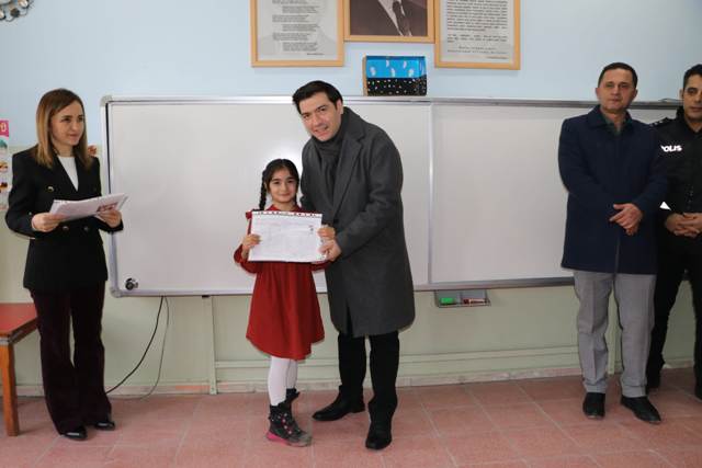 Kaymakam Atalık, öğrencilere kitap okumaları tavsiyesinde bulunarak, "Yarıyıl eğitimini başarıyla tamamlayıp karne alan bütün öğrencilerimizi tebrik ediyoruz. Ailelerinizle güzel bir tatil geçirmenizi diliyorum." dedi.
