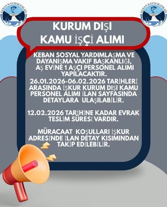 Müracaatların 26 Ocak 2026 ile 06 Şubat 2026 Tarihleri arasında İşkur Adresinde başvuruda bulanabilecekler.