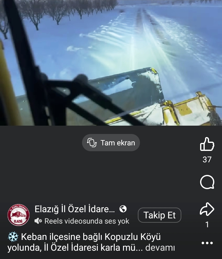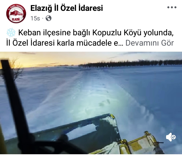 "Keban ilçesine bağlı Kopuzlu-Hörenek yolunda, İl Özel İdaresi karla mücadele ekiplerimizin çalışmaları sürüyor." İfadesi kullanıldı.