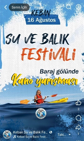 15-16-17 Ağustosta Düzenlenecek 5. Keban Su ve Alabalık Festivalinin 16 Ağustos gününde kano gösteri yarışı alacağı belirtildi.