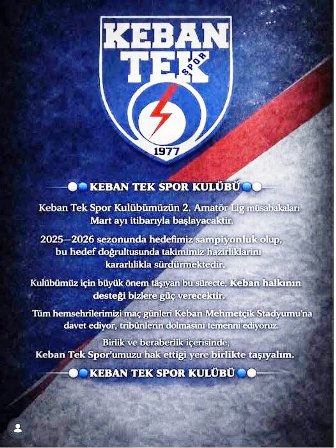 "Keban Tek Spor Kulübümüzün 2. Amatör Lig müsabakaları Mart ayı itibarıyla başlayacaktır.