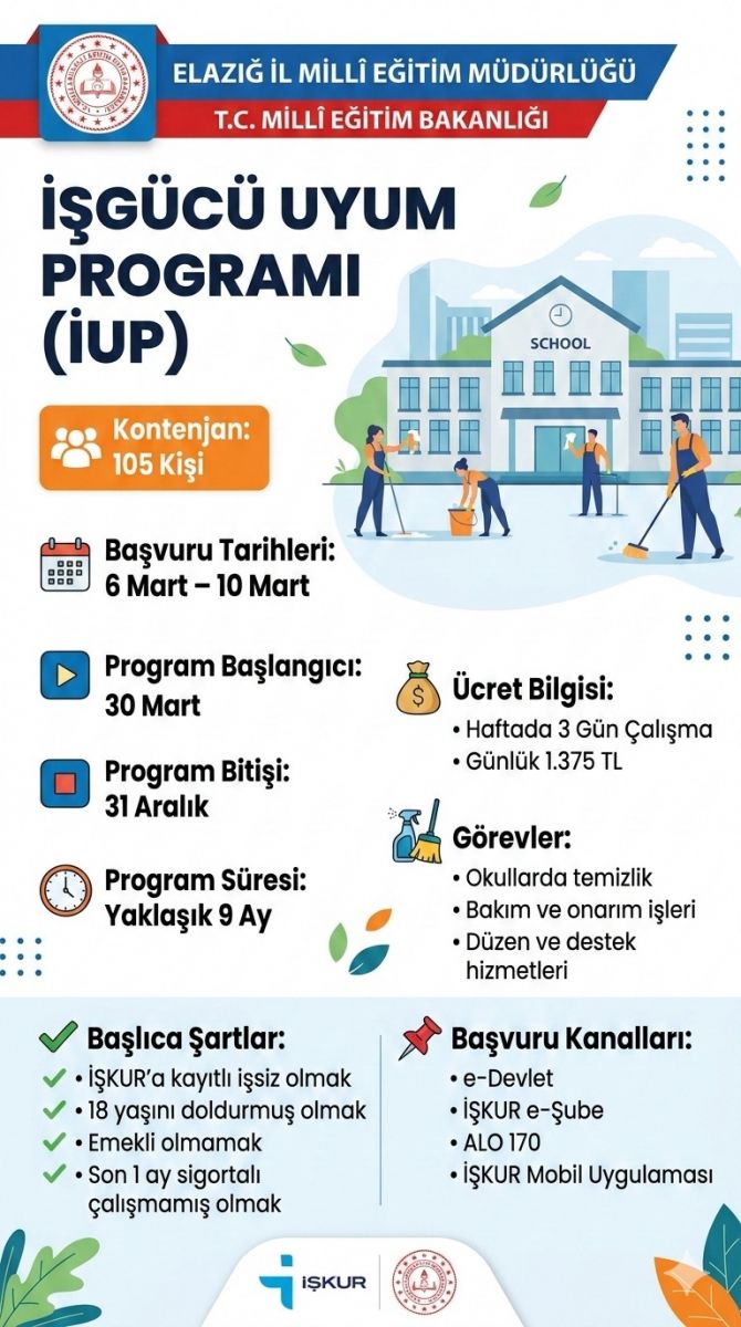 işkur kayıt no. 18011 Keban ve Elazığ İlçelerinde 105 Kişilik İŞKUR UYP iŞ Gücü Uyum Programları Başvuruları başladı