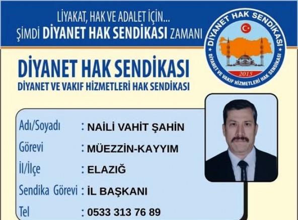 Elazığ Diyanet Hak Sendikası İl Başkanı Naili Vahit Şahin'i Keban Gazetesi ve keban.com.tr olarak Tebrik ediyoruz.