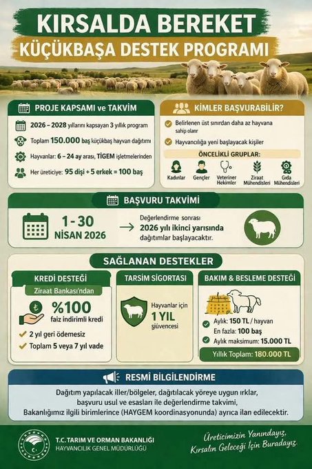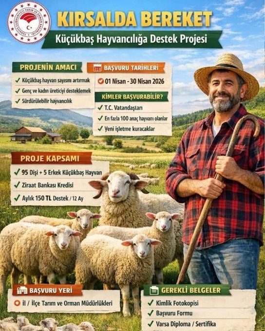 Cumhurbaşkanı Recep Tayyip Erdoğan tarafından kamuoyuna açıklanan Kırsalda Bereket Küçükbaş Hayvancılığa Destek Projesi, kırsalda üretimi güçlendirmek, aile işletmelerini büyütmek, gençlerimizi ve kadınlarımızı üretime daha fazla dâhil etmek ve meraya dayalı üretimi daha kârlı hale getirmek amacıyla hayata geçirilmektedir.