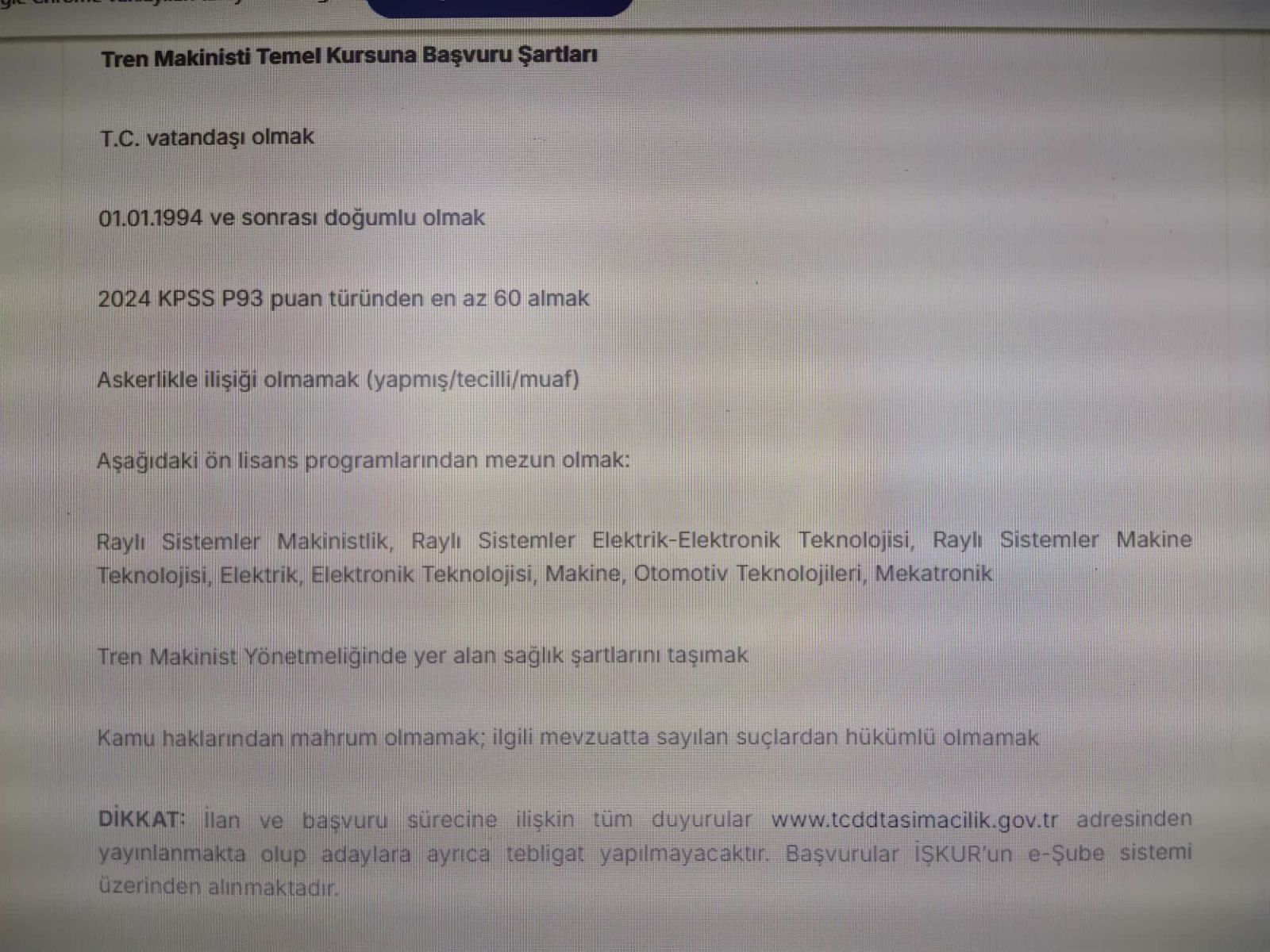 TCDD İşletmesi Genel Müdürlüğü, resmi sayfasında yaptığı paylaşımda Tren Makinisti Temel Kursuna 169 makinist alınacaklarını ifade etti.