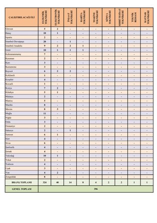 ALINACAK PERSONEL VE İL İSTİHDAM LİSTESİ AŞAĞIDADIR