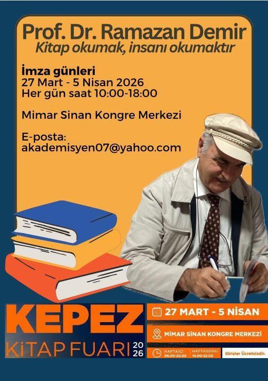 27 Mart- 5 Nisan 2026 tarihleri arasında Antalya Kepez Kitap Fuarındayım. Hergün saat:10.00-18.00 arasında kitaplarımı sizin için imzalıyorum.