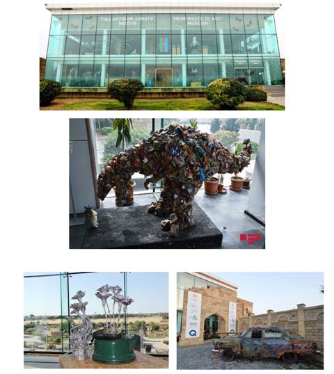 Sergide, metal atıklardan yapılmış “Simurg Kuşu”, ahşap artıklarından oluşturulan at figürleri, plastik kaşık, çatal ve bıçaklardan şekillendirilen balık figürleri, 1, 3 ve 5 kapiklik madeni paralardan yapılan balıklar ile otomobil jantları ve yedek parçalarından üretilmiş tar (Azerbaycan müzik aleti) özellikle dikkat çekmektedir. Müzede sergilenen eserler yalnızca yerli sanatçılara değil, dünyanın 46’dan fazla ülkesinden ressam ve heykeltıraşlara aittir.
